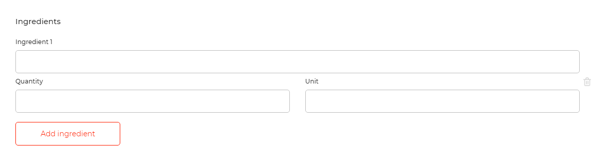 This opens a new ingredient form where you can enter ingredient name, quantity and unit.