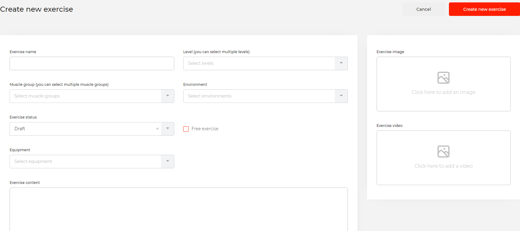 After filling out all the details and uploading the exercise video and exercise image that you want to use you can add descriptions and steps for easier understanding for your users.